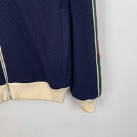 Gucci Navy Hooded Zip-Up Sweatshirt With Red & Green Stripes