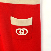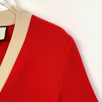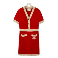 Grade A H12581 Gucci Red V-Neck Short-Sleeve Dress with Double-G Embroidery, Size S, 98% new. Original price: $2,020. Add timeless elegance to your wardrobe—shop now and make this luxurious piece yours!