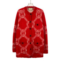 Gucci Red Wool-Blend Cardigan With GG Monogram Pattern & Button Front