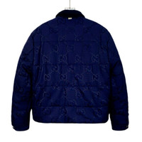 Gucci Reversible GG Logo Quilted Jacket Navy Corduroy Snap Button Closure Versat