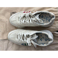 These Gucci Rhyton sneakers feature a multicolor logo design on cream white leather, offering a bold yet sophisticated look. The sneakers' cushioned sole provides comfort, while the floral interior lining adds a touch of uniqueness. Ideal footwear for casual and semi-casual outfits. • Lace-up closure for secure fit • Signature Gucci branding • Floral interior lining • Durable rubber sole • Chunky silhouette Slight scuffs on the heels and soles; overall great condition. Size: Womens 37 Condition: Pre-Owned Like New