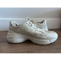 Gucci Rhyton Multicolor Logo Womens Sneakers Size 38 Cream White Leather