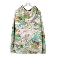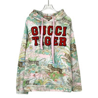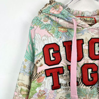 Gucci Tiger Floral Graphic Hoodie Sweatshirt Multicolor Cotton Blend Size M