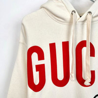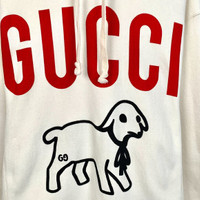Gucci Unisex Ivory Hoodie With Red Logo & Lamb Graphic