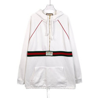 Gucci White Half-Zip Hoodie with Drawstring Hood and Signature Web Trim