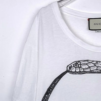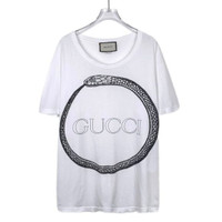 Gucci White Ouroboros T-Shirt XXL Cotton Mens Crewneck Logo Print
