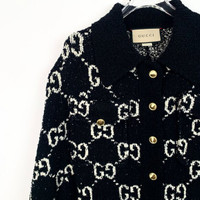 This Gucci cape exudes sophistication with its iconic monogram design. Crafted from a luxurious wool and cotton blend, it features a smart button-up front and a chic collar. Made in Italy, this piece combines timeless elegance with modern style, ensuring a refined addition to any wardrobe. • Button-Up Front • Iconic Monogram Design • Chic Collar • Made In Italy • Wool & Cotton Blend Q13755 Size: Womens XXS Condition: Pre-Owned Like New