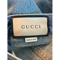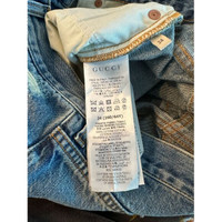 These Gucci jeans, made in Italy, showcase a distressed style with strategic rips for a fashionable, edgy look. Crafted from premium cotton, they offer comfort and durability, making them a staple for any wardrobe. • Button closure • Belt loops • Five-pocket styling • Distressed details on front • Straight leg fit Size: Womens 24 Condition: Pre-Owned Like New