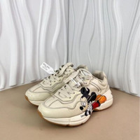 Gucci X Disney Womens Rhyton Sneakers Mickey Mouse Print Low Top Cream Size 35.5
