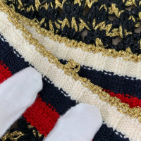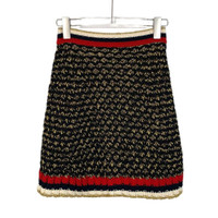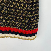 Gucci XS Black & Gold Woven Cotton Blend Skirt With Red/White/Navy Stripes & Cha