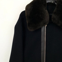 S Grade H12557 Hermès Black Wool Jacket with Fur Collar and Zipper, Size 48 (M), brand new with original tags. Original price: $9,600+. Indulge in the epitome of luxury—shop now and own this timeless masterpiece!
