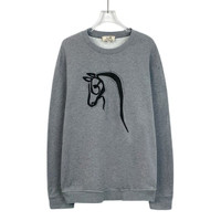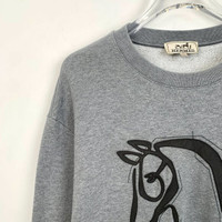 Hermes Gray Cotton Sweatshirt Horse Embroidery Medium Unisex