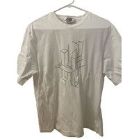 Sophisticated short-sleeve t-shirt showcasing an intricate black abstract embroidery on fine white cotton. Designed for comfort and style, made in Italy. • Short sleeves with a round neckline • Abstract black embroidery design • Made in Italy with premium craftsmanship • Lightweight and breathable fabric Size: Mens M Condition: Pre-Owned Like New
