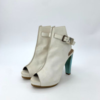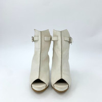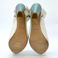 Hermes Size 38 White Leather Open-Toe High Heel Sandals With Buckle Strap & 95mm