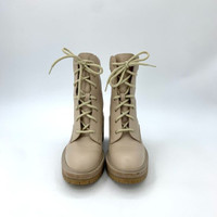 Hermes Womens Apricot Leather Lace-Up Mid-Calf Martin Boots 38.5 Round Toe Rugge