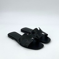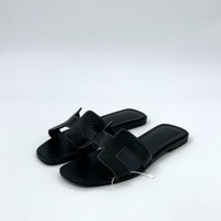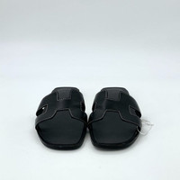 Hermès Womens Black H Line Leather Flat Sandals Size 36 Made In Italy