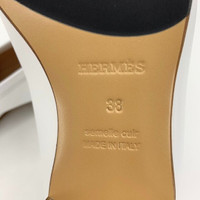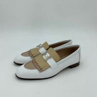 Hermès Womens Mocassins Royal Leather Flats Size 38 White & Beige With Logo Deta