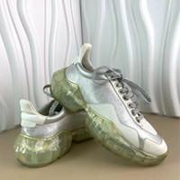 Jimmy Choo Ladies Low-Top Diamond Clear Sole Sneakers White & Silver Size 37.5 M