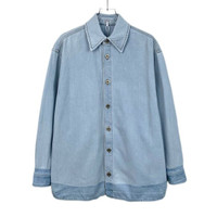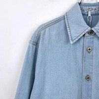 Grade A H12493 Loewe Light Blue Cotton Denim Shirt with Collared Design, Size 36 (XS), 95% new with slight stains. Add a touch of casual sophistication to your wardrobe—shop now and make it yours!
