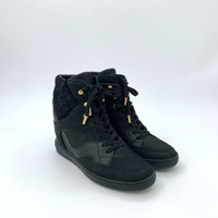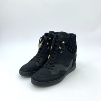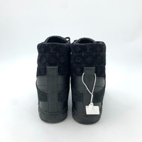 Louis Vuitton Black Leather & Suede High Top Sneakers With Monogram Detail Size