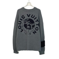 The Louis Vuitton gray sweater offers a sophisticated style with its ribbed texture and distinctive black elbow patch. Crafted from 100% wool, it provides comfort and warmth. The stylish back logo further enhances its appeal, making it a refined choice for cooler days. • Ribbed design • Black elbow patch • Back logo detail • Crew neck style • Long sleeves J13729 Size: Womens L Condition: Pre-Owned Like New