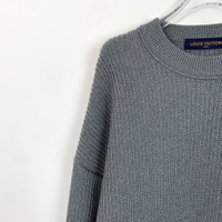 Louis Vuitton Gray Wool Ribbed Sweater With Black Elbow Patch & Back Logo Mens