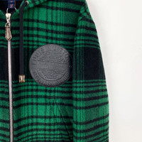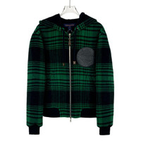 Louis Vuitton Green & Black Plaid Wool Hooded Zip-Up Jacket With Leather Patch D