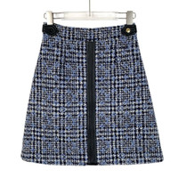 Louis Vuitton Paris Tweed A-Line Skirt With Leather Accents & Gold Button Detail