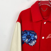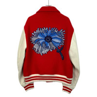Louis Vuitton Red & White Varsity Jacket With Blue Embroidery Size 50 Wool & Cow