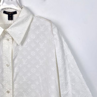 S Grade H12670 Louis Vuitton White Cotton Short-Sleeve Shirt with All-Over Monogram Print and Collared Design, Size 40, 98% new. Add a touch of luxury and sophistication to your wardrobe—shop now and make it yours!