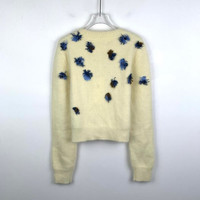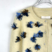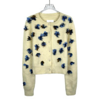 Maison Margiela Womens Cream Angora Blend Cardigan With Blue & Brown Embellished