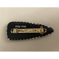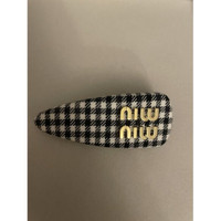 Miu Miu Black & White Plaid Hair Clip With Gold-Tone Logo Embellishment