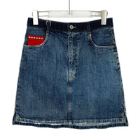 A chic and stylish mini skirt crafted from durable denim, featuring unique studded pocket details in vibrant red and blue. The distressed hem adds a modern touch, while the Miu Miu branding ensures sophistication. • Button and zip closure for a secure fit • Frayed hemline for a casual aesthetic • Stud details on front and back pockets • Miu Miu leather logo patch on back J12990 Size: Womens 42 Condition: Pre-Owned Like New
