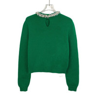 A luxurious green knit sweater featuring a crew-neck design, pearl bead embellishments, and a fine cashmere composition. Designed for a sophisticated look. • 100% cashmere material • Pearl bead detailing on the neckline • Long sleeve with ribbed cuffs • Keyhole closure at the back • Made in Italy h14046