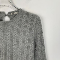 Miu Miu Grey Cashmere Cable-Knit Sweater S Round Neck Long Sleeve Knitwear Made