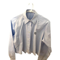 Miu Miu Light Blue Button-Up Shirt With Embroidered Logo Long Sleeves & Collared