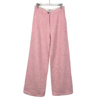 Grade A Miu Miu H11412 Pink Bouclé Wool Wide-Leg Pants, size 40, 98% new, originally priced over $1,381 USD, a stylish and versatile piece for effortless elegance.