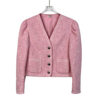 Miu Miu Pink V-Neck Single-Breasted Tweed Jacket