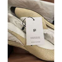 Patent leather and raffia slingback pumps