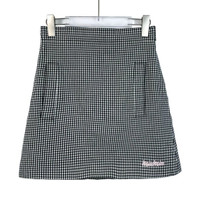 Miu Miu Womens Black & White Houndstooth Check Skirt With Pink Logo Embroidery S
