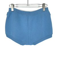 Miu Miu Womens Blue Knit Shorts With Button Accents & White Trim Size 40 Made In