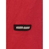 Miu Miu Womens Red Long-Sleeve Crewneck T-Shirt With Logo Patch Lightweight Casu