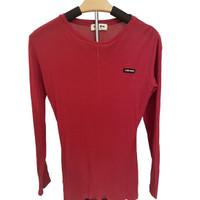 This lightweight long-sleeve t-shirt by Miu Miu is crafted from soft material for comfortable wear. The red hue and logo patch add a subtle branded touch. • Crewneck design for a classic look • Soft and breathable material • Long sleeves for added coverage • Signature Miu Miu logo patch • Lightweight feel for versatile layering Size: Womens S Condition: Pre-Owned Like New