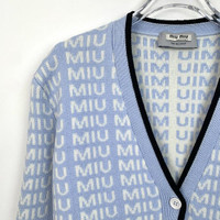 MiuMiu Blue Logo Monogram Knit Cardigan