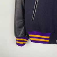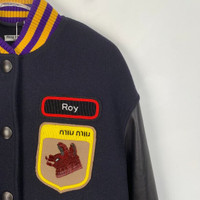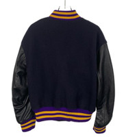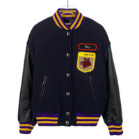 A-Grade H11027 Miu Miu color-block wool varsity jacket with embroidered logo and bead embellishments, size 38. 98% new.