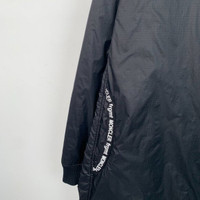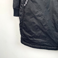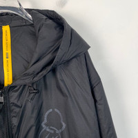 S-Grade Moncler H11335 Bastonx Series x Fragment Hiroshi Fujiwara Collaboration Black Logo Print Hooded Zip-Up Jacket, size 5 (XL), 98% new with tags, originally priced at approximately $1,202 USD, a rare and stylish collector's piece blending streetwear and luxury.