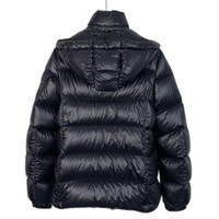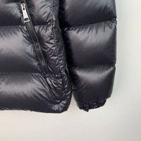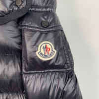 Designed for both functionality and sophistication, this lightweight down-filled jacket offers exceptional warmth. Features include a detachable hood and signature Moncler branding. • Lightweight quilted design for comfort • Detachable hood with snap closures • Full front zipper closure • Iconic Moncler logo on sleeve • Two zippered front pockets Minor hook wire noted on surface. H11295