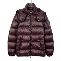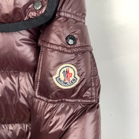 Grade A Moncler H11260 Berre Series Dark Red Logo Patch Hooded Quilted Down Jacket, size 2 (M), 98% new, a sophisticated and functional choice for stylish winter wear.