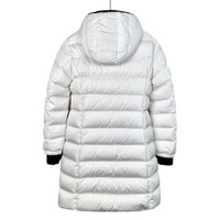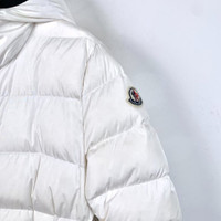 Grade A Moncler H11410 Betulong Series White Logo Patch Hooded Down Jacket, size 2 (M), 98% new, a sleek and functional outerwear piece combining luxury with winter practicality.