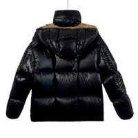 This Moncler jacket combines functionality with luxury. Crafted from durable materials, it offers warmth and style with its sophisticated black and beige color scheme. The water-resistant design ensures protection against harsh weather while maintaining a fashionable appearance. • Zip closure with branded pull • Snap button detachable hood • Moncler logo patch on sleeve • Water-resistant material • Front zip pockets H12889